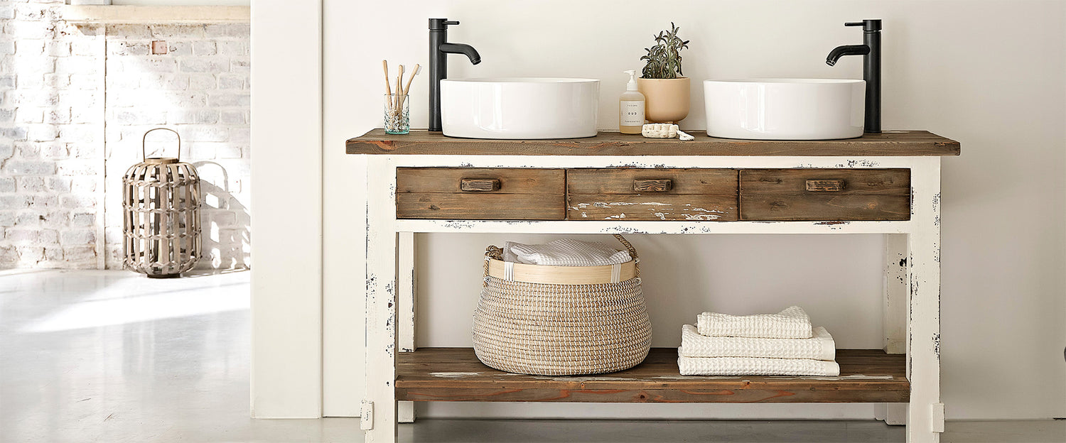 Die Kollektion SEZANNE und die Kollektion ATLANTIC wurden aus Kiefernholz entworfen, das von Zügen, Schiffen und Häusern stammt und dem man ein zweites Leben geben möchte, und sie beherrschen die Kunst der Transformation. Das vom Leben patinierte Aussehen beibehalten, um dem zukünftigen Möbelstück das Aussehen eines erfahrenen Abenteurers zu verleihen, der schon immer hier gelebt hat, die Feierlichkeit des Hauses, die ihm einen unglaublichen Charme verleiht, den wir als Kontrast mit den nüchternen Kurven unserer eleganten Badezimmerwaschbecken kombinieren wollten.